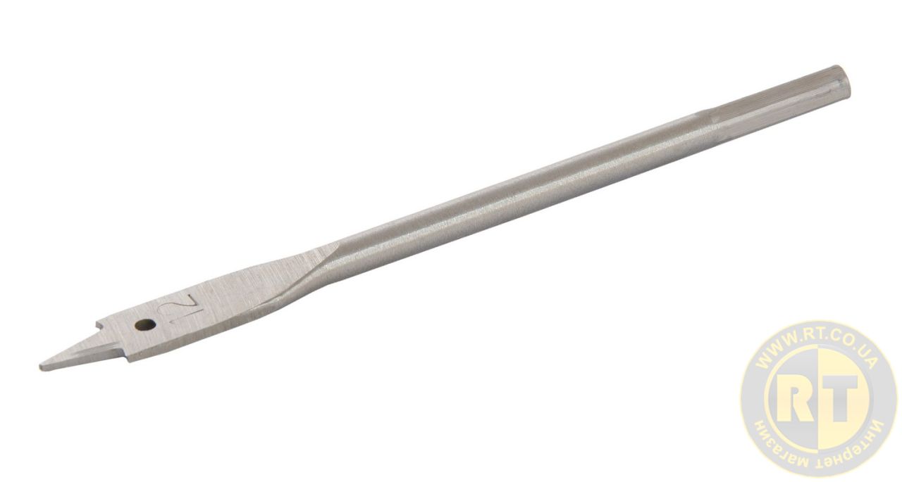 Свердло для дерева перове Ø 12 мм, довжиною 152 мм з 6-гранним хвостовиком – ефективний інструмент для швидкого та точного свердління отворів у деревині, фанері, ДСП та інших подібних матеріалах. Оснащено центруючим наконечником для легкого початку роботи та рівномірного входження у заготівлю. Плоска ріжуча частина гарантує чистий край отвору, а збільшена довжина 152 мм дозволяє працювати з товстими матеріалами. 6-гранний хвостовик забезпечує надійну фіксацію в патроні дриля або шуруповерта, запобігаючи провертанню. Оптимальне рішення для професійного та побутового використання. • високовуглецева сталь HCS