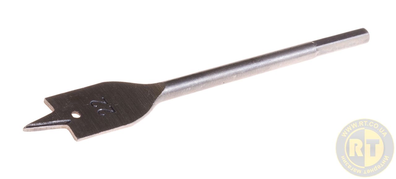 Свердло для дерева пухове Ø 22 мм, довжиною 152 мм з 6-гранним хвостовиком – практичний інструмент для швидкого свердління чистих та рівних отворів у деревині, фанері, ДСП або МДФ. Оснащено центруючим наконечником, що забезпечує точний старт без зісковзування. Плоска ріжуча частина гарантує акуратний результат навіть у товстих заготовках. Завдяки довжині 152 мм можна працювати із глибинними отворами. 6-гранний хвостовик забезпечує надійну фіксацію в патроні дриля або шуруповерта і запобігає прокручування. Ідеально підходить як для професійних майстрів, так домашнього використання. • високовуглецева сталь HCS