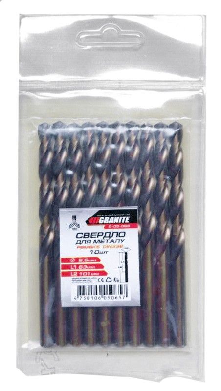 • Кут заточування: 135° (тип "Spl" Ідеально підходить для свердління нержавіючої сталі, чавуну, кольорових металів. • Стійко до перегріву при інтенсивній роботі. • Висока точність і тривалий термін служби . - Це якість, яка витримує навантаження. Надійний вибір для професіоналів та вимогливих користувачів. • швидкорізальна сталь HSS Co • твердість HRC 62-65 • кут заточування 135 ° • норма відпустки 10 шт