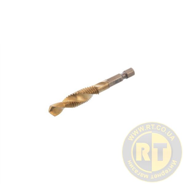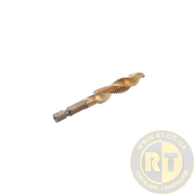 Свердло-мітчик призначене для свердління та нарізання різьби в металі. Свердло виготовлене зі швидкорізальної сталі, при цьому поверхня робочої зони вкрита нітридом титану. Таке покриття підвищує зносостійкість різальних кромок та захищає від механічних пошкоджень.