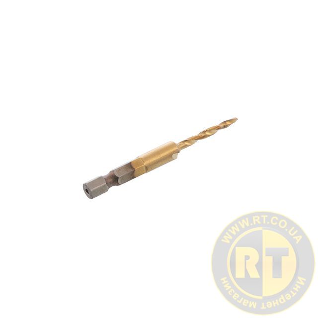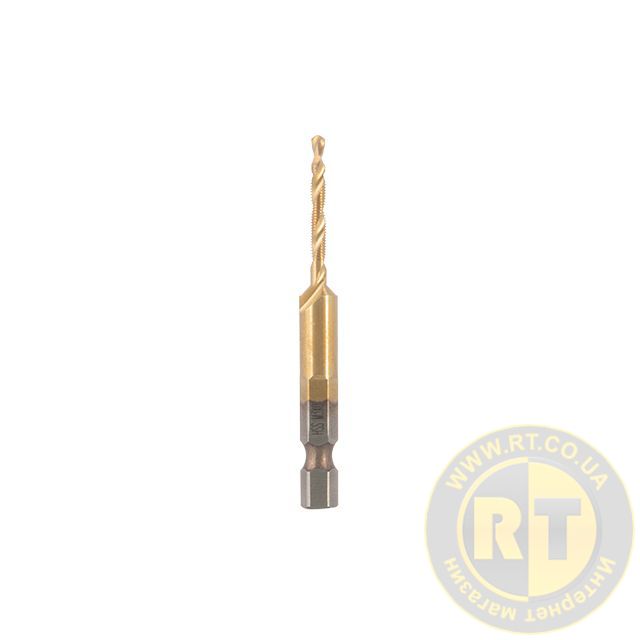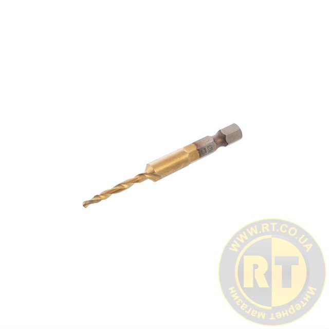 Свердло-мітчик призначене для свердління та нарізання різьби в металі. Свердло виготовлене зі швидкорізальної сталі, при цьому поверхня робочої зони вкрита нітридом титану. Таке покриття підвищує зносостійкість ріжучих кромок та захищає від механічних пошкоджень.