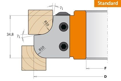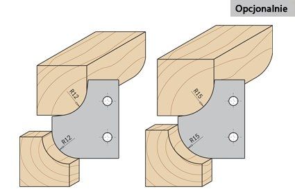 Фреза призначена для виробництва меблів, дверей та кухонних фасадів. Фреза має можливість встановлення трьох різних ножів для заокруглень із радіусами: 10, 12 і 15мм.