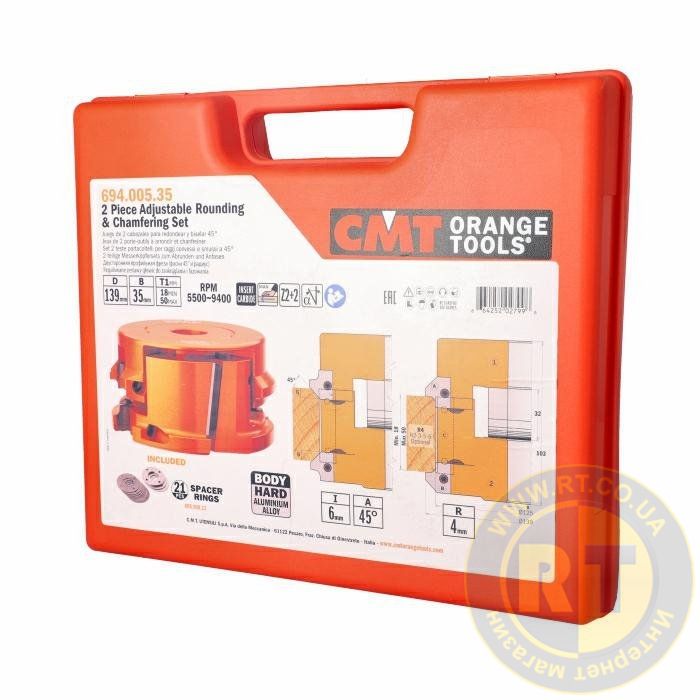 Для фрез підібрано 5 різних радіусних ножів R = 2, 3, 4, 5, 6мм, для заокруглення та зняття фаски під кутом 45° матеріалу висотою від 18мм до 50мм.