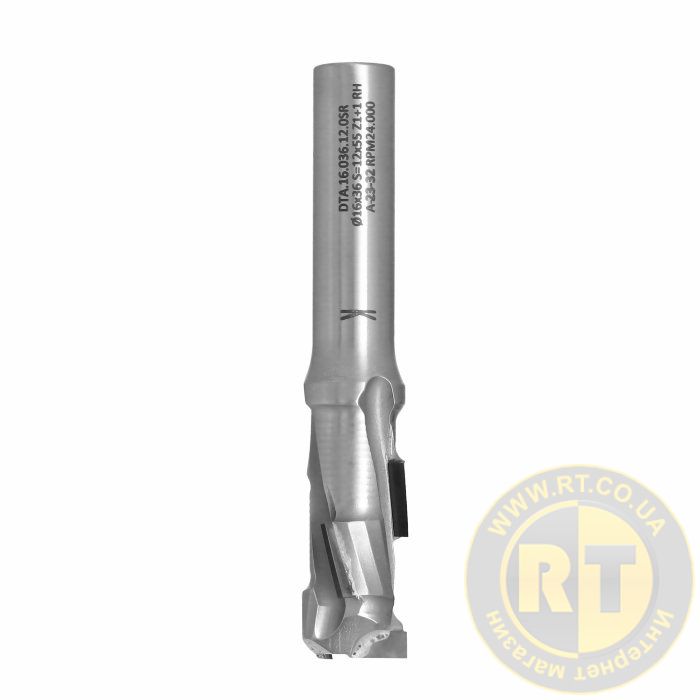 DTA Фреза DIA Z1+1 D=16 I=36 L=90 S=12x55RH 9PCD+1PCD H2,5 3спіралі корпус:STAL CMT DTA.16.036.12.0SR