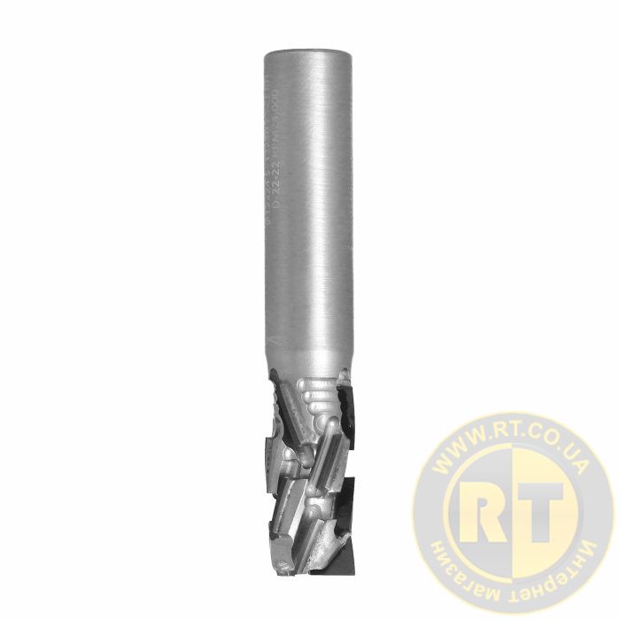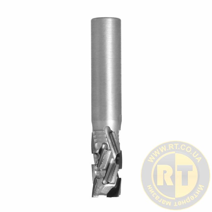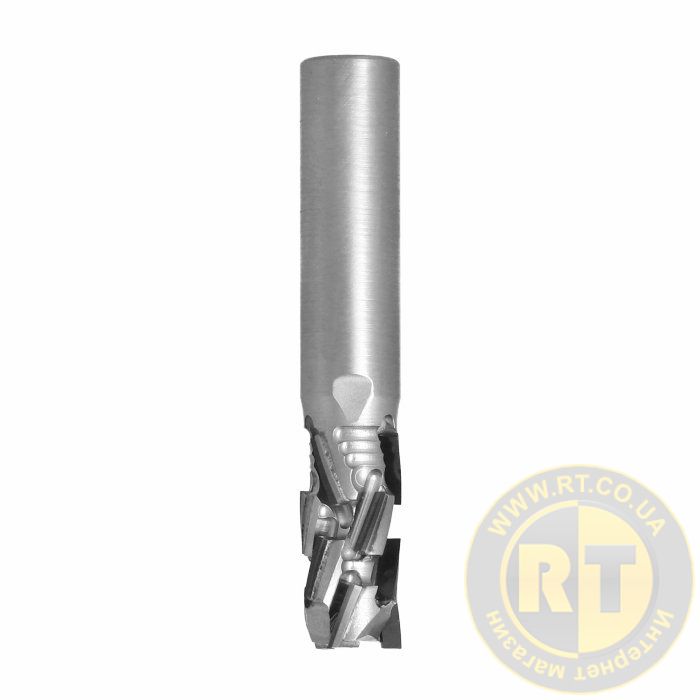 Верхній зуб негатив + всі нижні зуби розміщені за позитивом. Підібрано для роботи з конкретною шириною матеріалу, де верхня частина Фреза (негативний зуб) має працювати у верхній частині матеріалу. Конструкція ріжучої спіралі викидає опилки до гори.