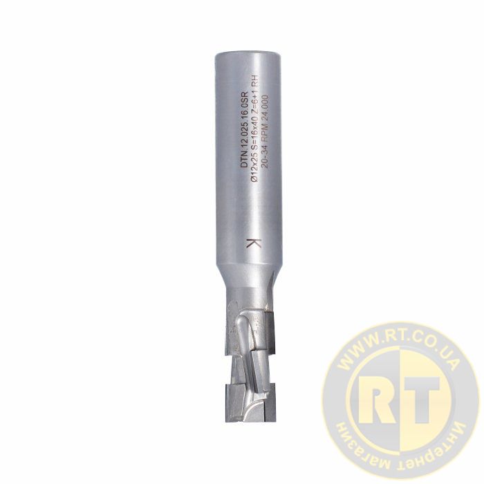 DTN Фреза DIA D = 12 I = 25 S = 16 RH 4 спіралі ECO Z = 6 + 1 (Z = 2)