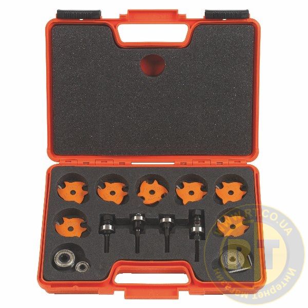 Набір регульованих фрез для створення різних пазів. У комплект входять 4 різні підшипники для отримання різної
