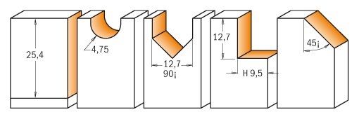 Набір із п'яти найбільш популярних прямих пазових фрез, упакованих у пластиковий помаранчевий кейс. Фреза виконана з міцного твердосплаву з помаранчевим покриттям PFTE