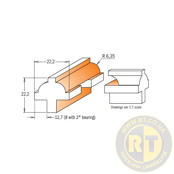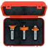 Цей набір із трьох фрез створень спеціально для виготовлення переплетень скляних дверей, меблів. Набір включає фрезу «Ovolo» для заокруглення країв рами, склепінчасту фрезу для обробки торців з'єднань