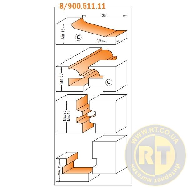 Комплект фрези HW 5 шт. профіль CS=12 CMT 900.511.11
