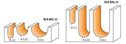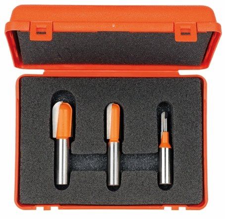 Набір з 3 найпопулярніших фрез для заокруглень значно розширить ваші можливості. Запропоновані Фреза із хвостовиками 6,35 мм і 12,7 мм. Пазові Фрези з радіусом CMT сконструйовані для обробки деревини, МДФ, фанери. Залежно від діаметра, ріжуча частина може бути виготовлена з монолітного твердосплаву або з твердосплавними напайками.