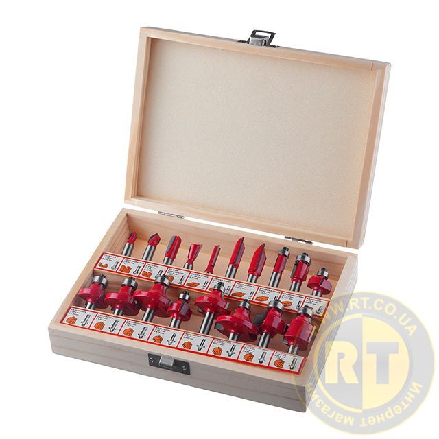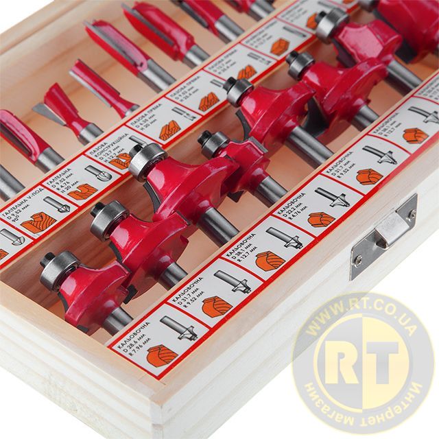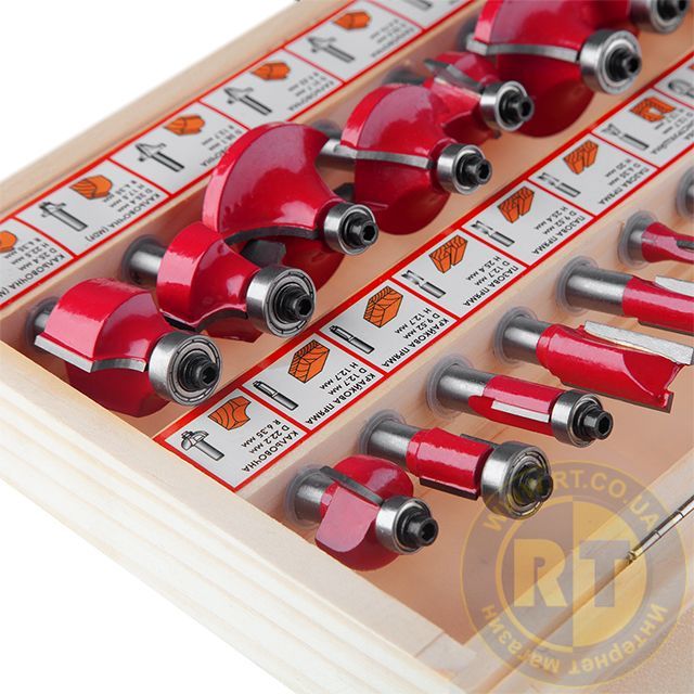 У наборі HT-0073 представлені кілька видів фрез, які найчастіше бувають необхідні у побуті. Багато фрез, так чи інакше, призначені в основному для виробництва меблів, віконних рам, паркету тощо. Такими фрезами в домашніх умовах ми не користуватимемося самостійно. А ось, врізати замок у дерев'яні двері, зробити своїми руками табурет, полицю для книг - можна виконати і в домашніх умовах завдяки досить простій формі фрез.