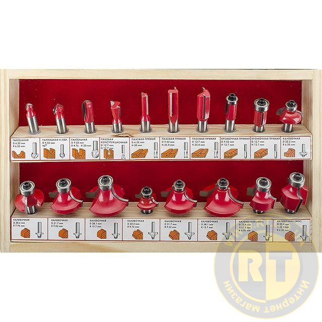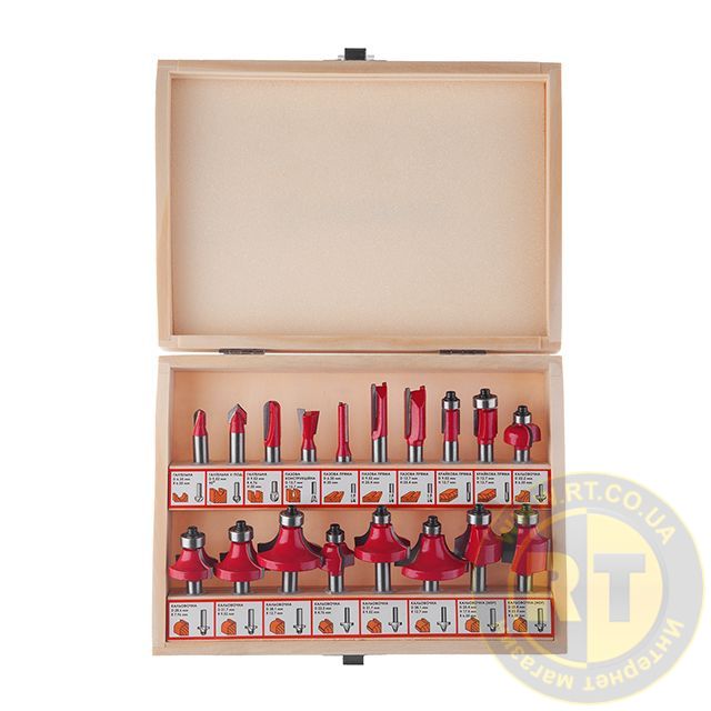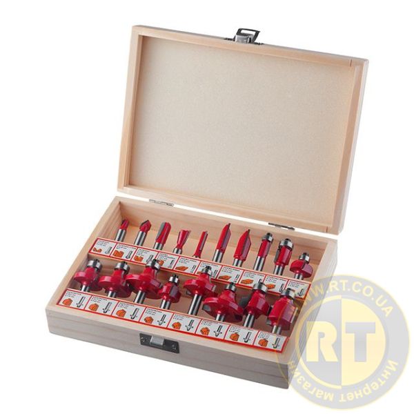 Фрези - різальні інструменти з одним або декількома різальними лезами, призначені для фрезерування, вибірки пазів різної форми, виконання шпонкового паза тощо. Даний набір містить 18 різних за формою фрез. Комплект універсальний тим, що в ньому підібрані фрези основних розмірів та різних типів, що дозволяє виконувати широкий спектр завдань з фрезерування.