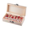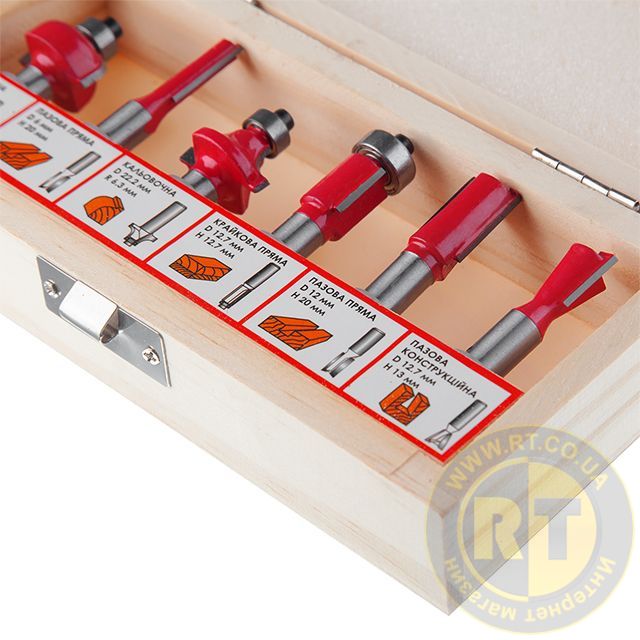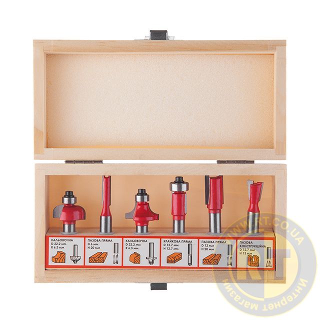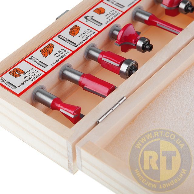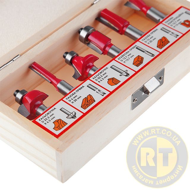 Даний набір містить 6 різних за формою фрез. Комплект універсальний тим, що в ньому підібрані фрези основних розмірів та типів, що дозволяє виконувати основні завдання з фрезерування.