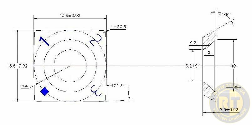 Ніж HM 14,3x14,3x2,5mm HC20 d=6,3 <35 ITA TOOLS 143254Ніж HM 14,3x14,3x2,5mm HC20 d=6,3 <35 ITA TOOLS 143254. Докладніше...14.3014.302,5HC206.3035°204грн