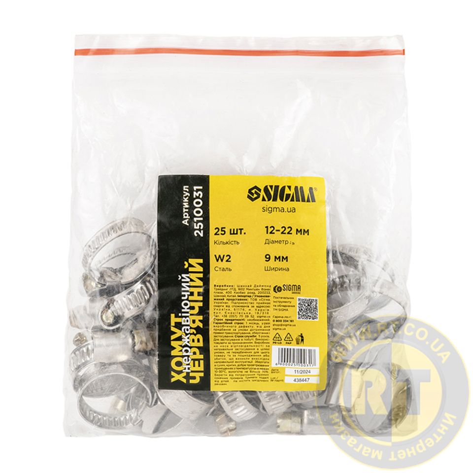 Хомут черв'ячний нержавіючий 9мм D12-22мм 25шт SIGMA 2510031