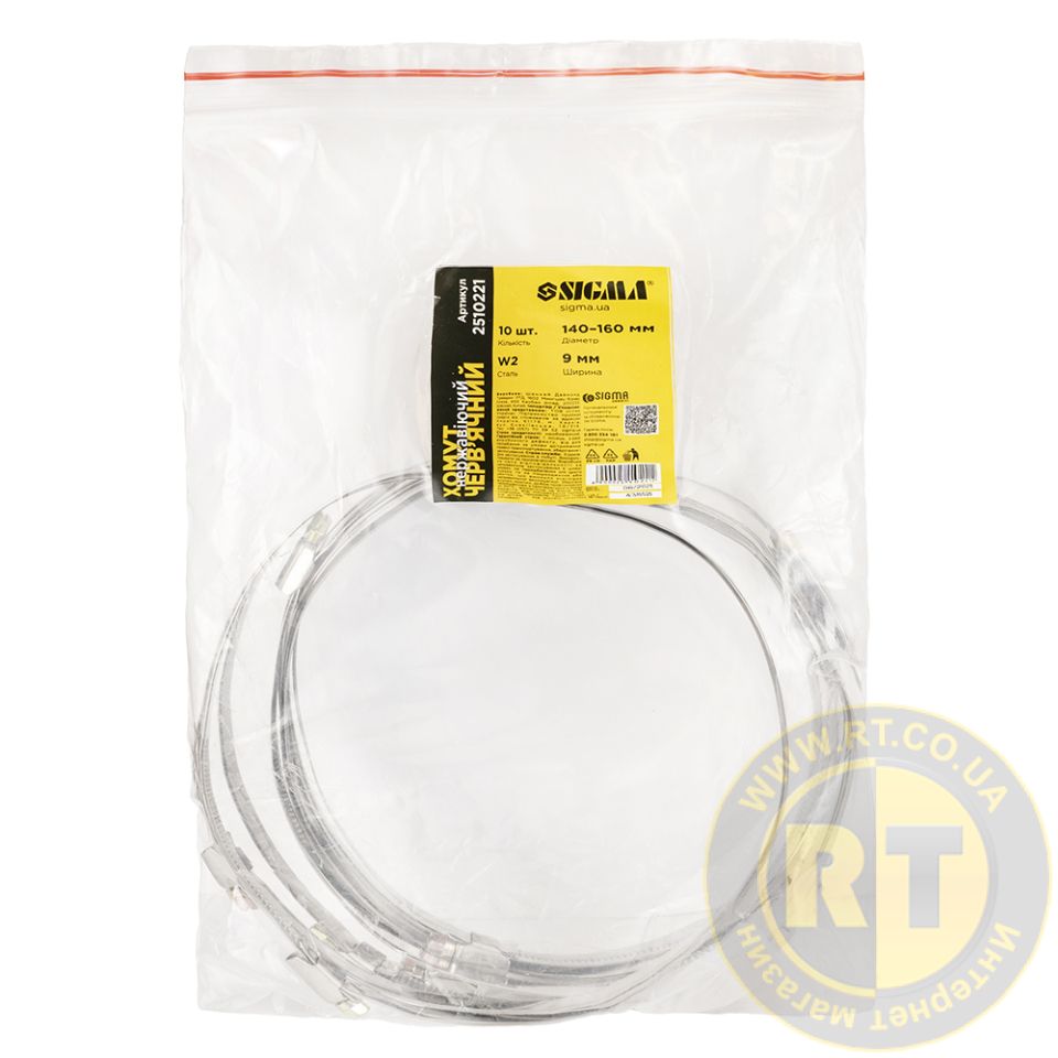 Хомут черв'ячний нержавіючий 9мм D140-160мм 10шт SIGMA (2510221) застосовується для кріплення шланга, рукавів і патрубків, трубок в гідравлічних і пневматичних системах, гофрованих труб ПВХ і ПНД до жорстких труб, гнучких повітря автомобілів, тракторів, сільськогосподарської, будівельної та іншої техніки.