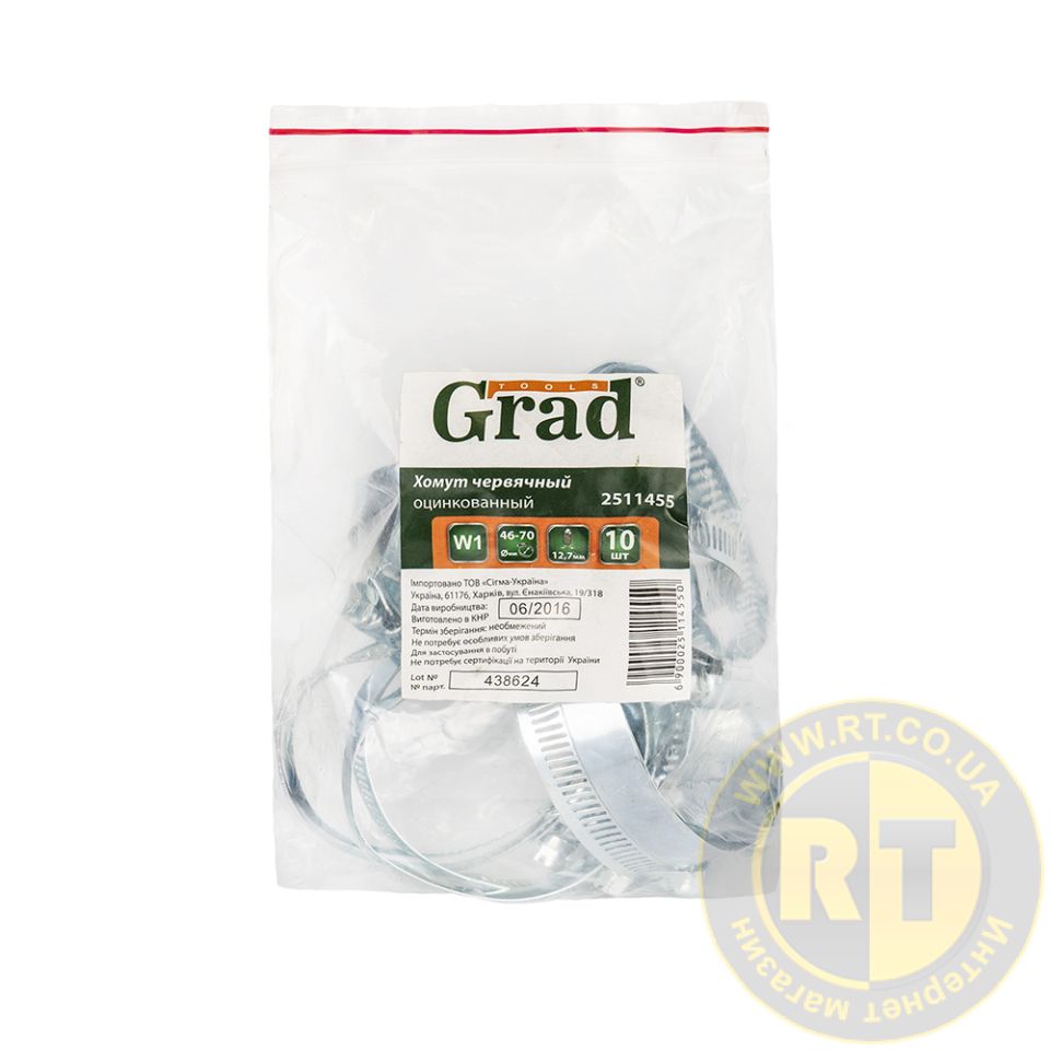 Хомут червячный оцинкованный 12.7мм D46-70мм 10шт GRAD 2511455