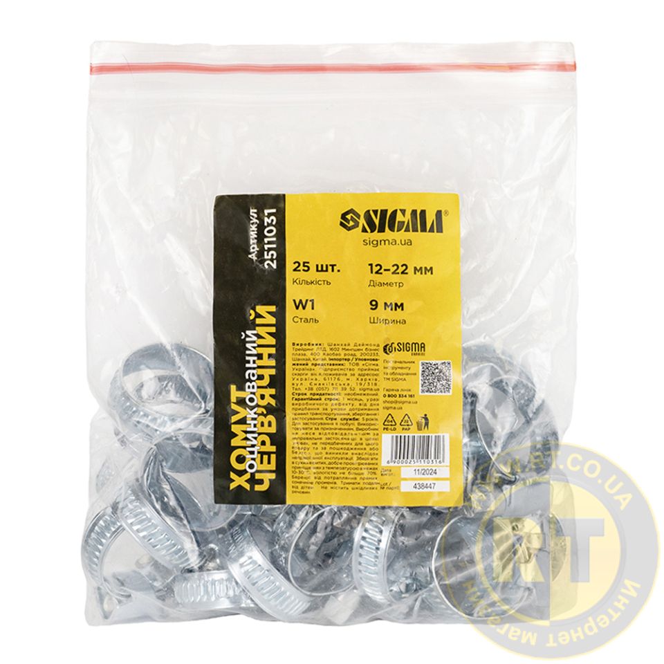 Хомут черв'ячний оцинкований 9мм D12-22мм 25шт SIGMA 2511031
