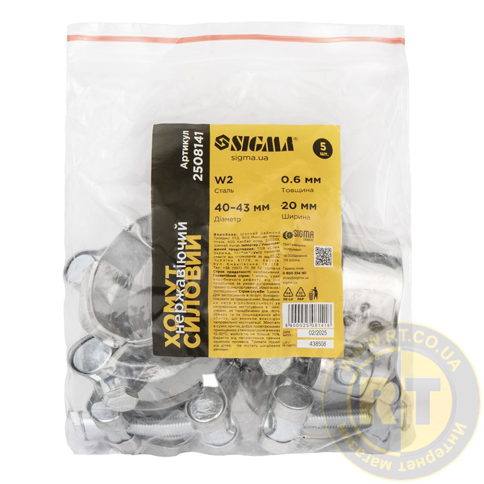 Хомут силовий нержавіючий 20мм Ø40-43мм (КРАТНО 5шт) SIGMA 2508141