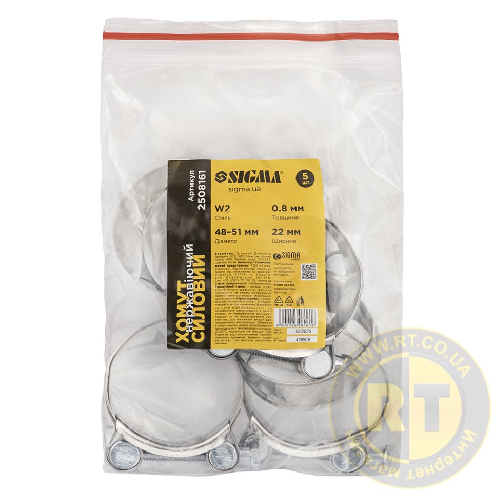 Хомут силовий нержавіючий 22мм Ø48-51мм (КРАТНО 5шт) SIGMA 2508161