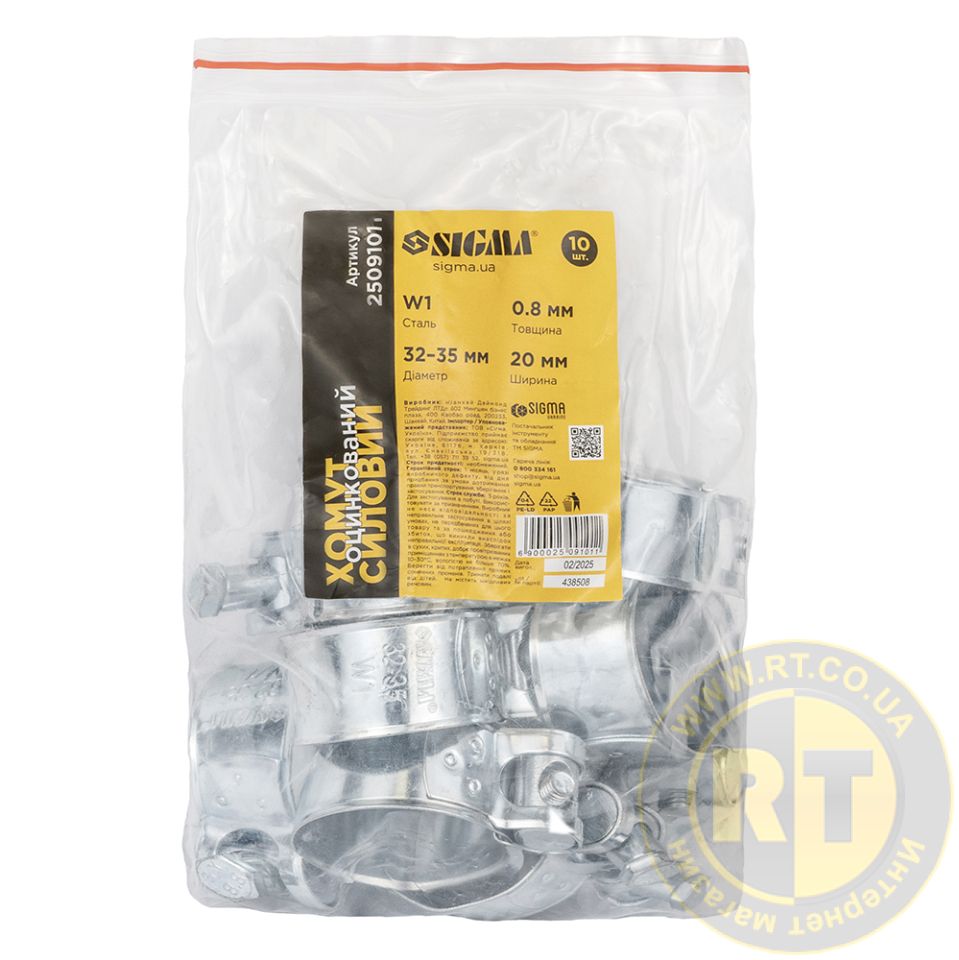Хомут силовий оцинкований 20мм Ø32-35мм (КРАТНО 10шт) SIGMA 2509101