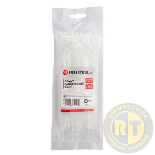 Хомут пластиковий, 2,5×150 мм, 100 шт/упак, білий INTERTOOL TC-2515