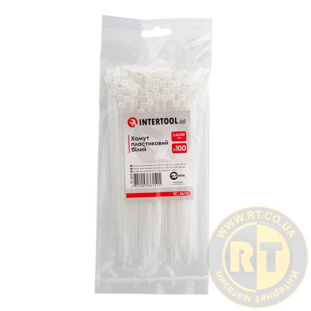 Хомут пластиковий, 3,6×150 мм, 100 шт/упак, білий INTERTOOL TC-3615