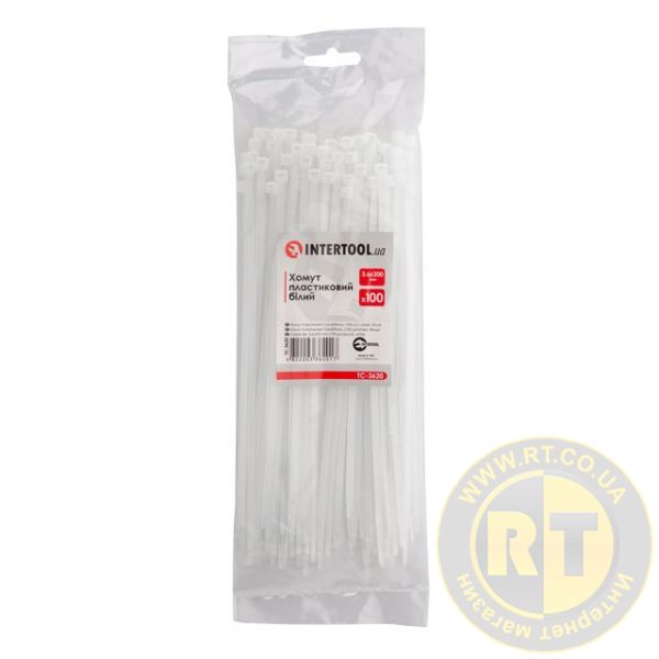 Хомут пластиковий, 3,6×200 мм, 100 шт/упак, білий INTERTOOL TC-3620