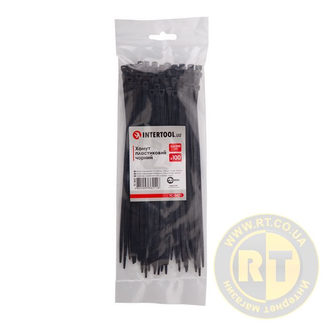 Хомут пластиковий, 3,6×200 мм, 100 шт/упак, чорний INTERTOOL TC-3621