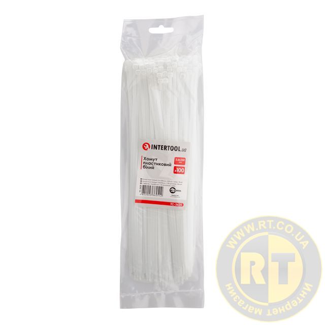 Хомут пластиковий, 3,6×250 мм, 100 шт/упак, білий INTERTOOL TC-3625