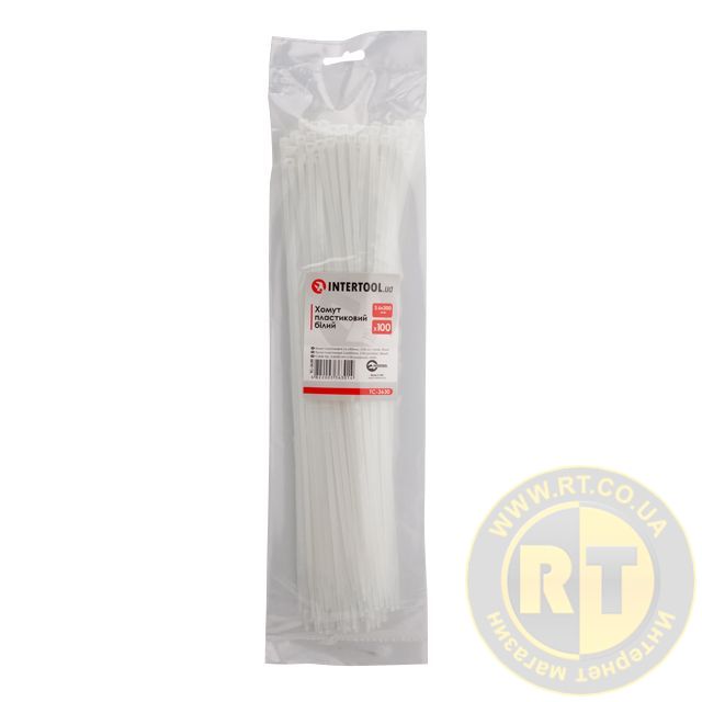 Хомут пластиковий, 3,6×300 мм, 100 шт/упак, білий INTERTOOL TC-3630