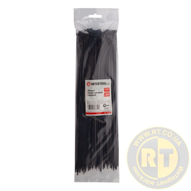Хомут пластиковий, 3,6×300 мм, 100 шт/упак, чорний INTERTOOL TC-3631