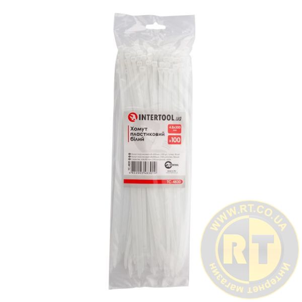 Хомут пластиковий, 4,8×300 мм, 100 шт/упак, білий INTERTOOL TC-4830