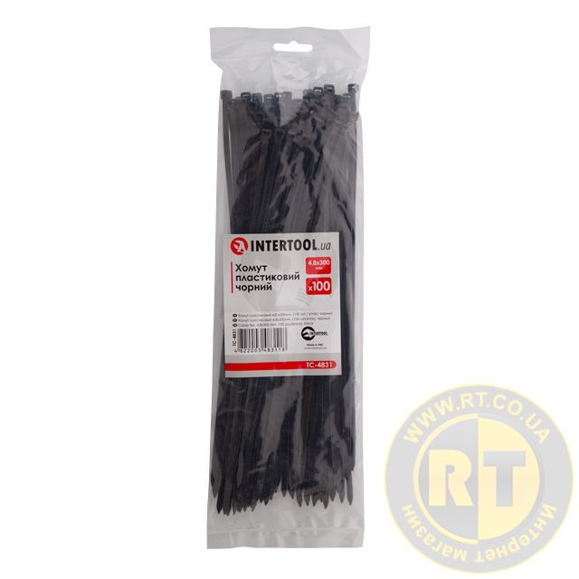 Хомут пластиковий, 4,8×300 мм, 100 шт/упак, чорний INTERTOOL TC-4831
