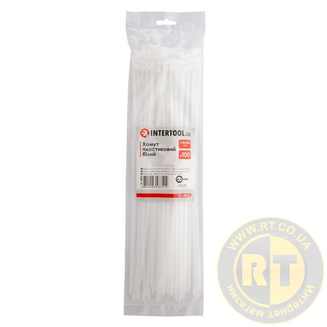 Хомут пластиковий, 4,8×350 мм, 100 шт/упак, білий INTERTOOL TC-4835