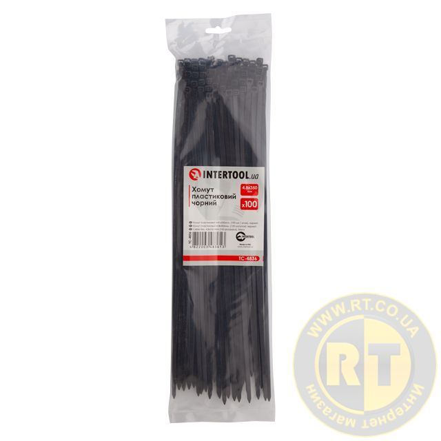 Хомут пластиковий, 4,8×350 мм, 100 шт/упак, чорний INTERTOOL TC-4836