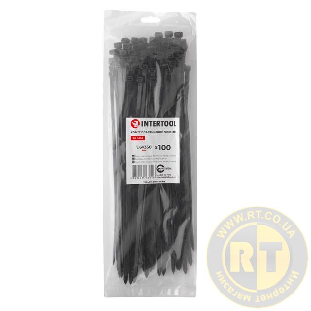 Хомут пластиковий, 7,6×350 мм, 100 шт/упак, чорний INTERTOOL TC-7636