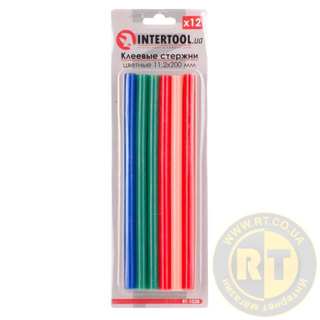 Комплект клейових стрижнів кольорових, 11,2×200 мм, 12 шт. INTERTOOL RT-1028