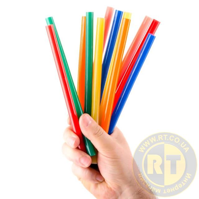 Клейові стрижні різних кольорів універсальні, підходять для різних завдань. Термоклей кольоровий: синій, зелений, оранжевий, червоний, жовтий, рожевий. В упаковці по 2 стержні кожного з кольорів. Діаметр стрижня 11,2 мм - один із найпоширеніших і найпопулярніших розмірів, підходить до будь-яких марок клейових пістолетів. Сам стрижень довжиною 200 мм, в упаковці - 12 штук.