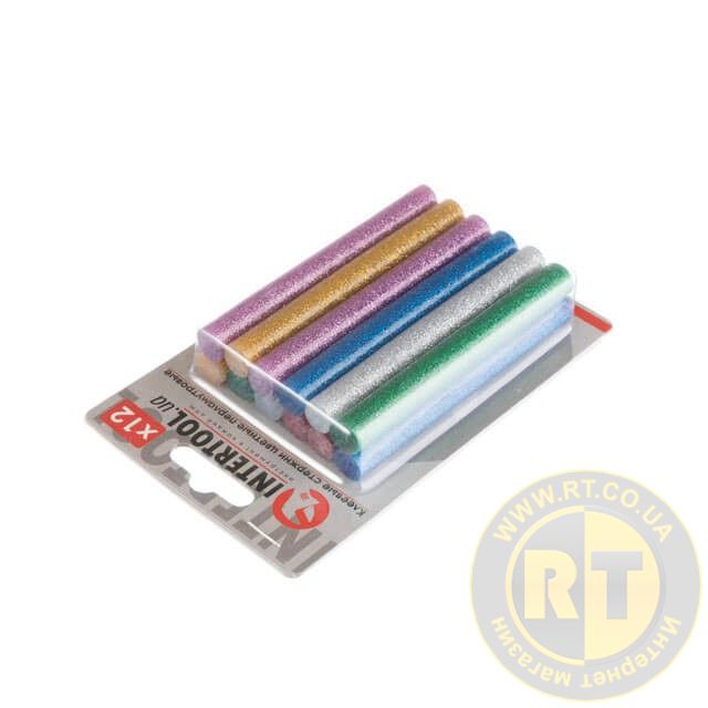Комплект клейових стрижнів кольорових перламутрових, 11,2×100 мм, 12 шт. INTERTOOL RT-1029