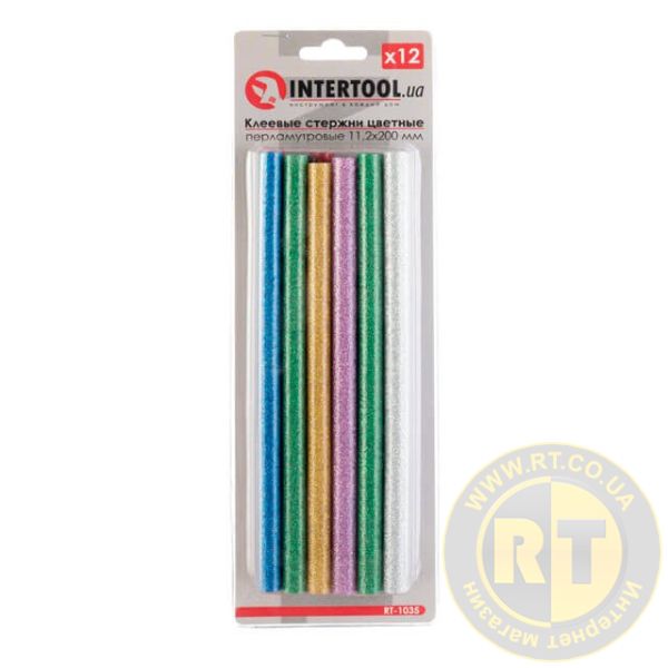 Комплект клейових стрижнів кольорових перламутрових, 11,2мм× 200 мм, 12 шт. INTERTOOL RT-1035