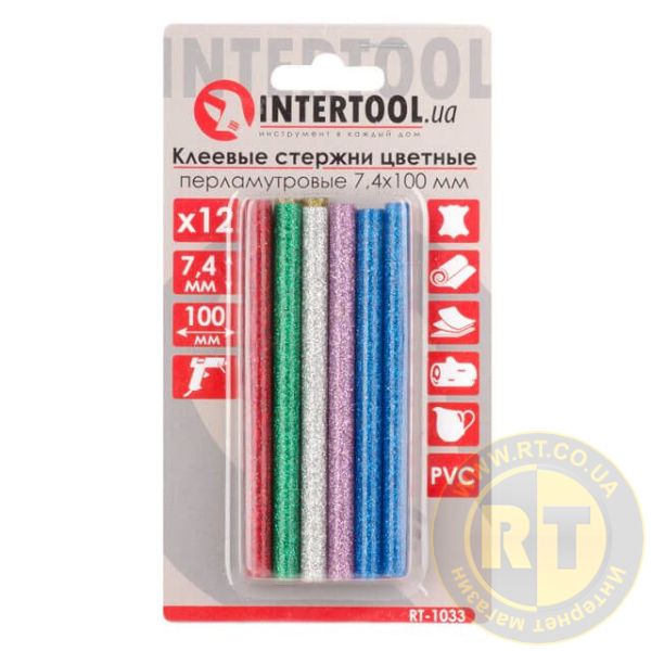 Комплект клейових стрижнів кольорових перламутрових, 7,4×100 мм, 12 шт. INTERTOOL RT-1033