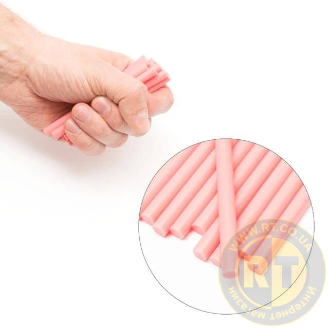 Клейові стрижні рожевого кольору універсальні, підходять для різних завдань. Діаметр стрижня 7,4 мм - один із найпоширеніших і найпопулярніших розмірів, підходить до будь-яких марок клейових пістолетів. Сам стрижень довжиною 100 мм, в упаковці - 12 штук.