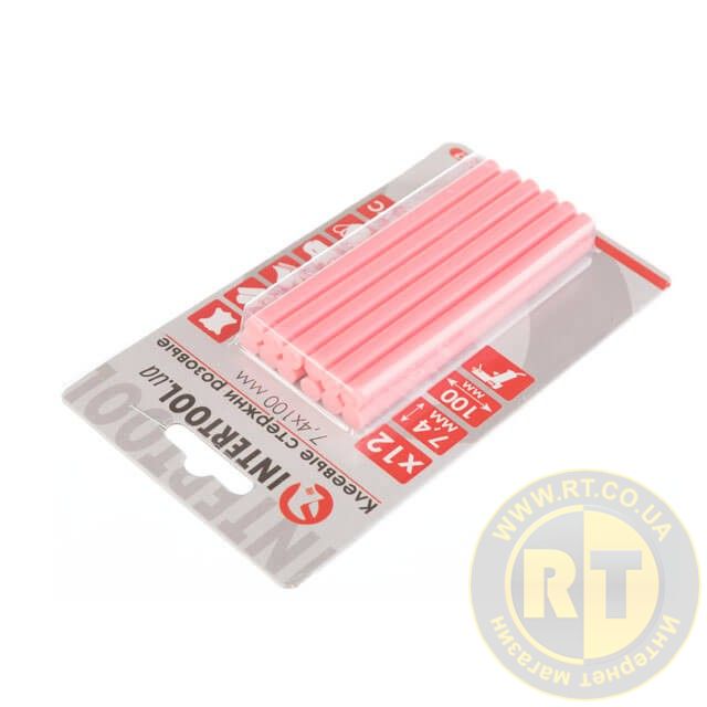 Комплект клейових стрижнів рожевих, 7,4×100 мм, 12 шт. INTERTOOL RT-1047