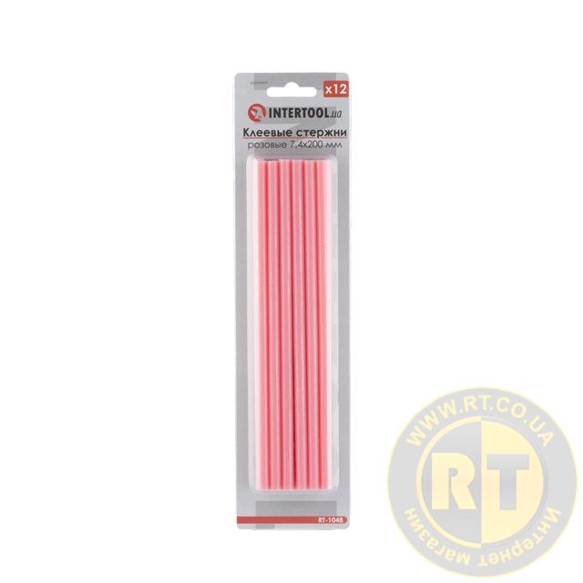 Комплект клейових стрижнів рожевих, 7,4×200 мм, 12 шт. INTERTOOL RT-1048