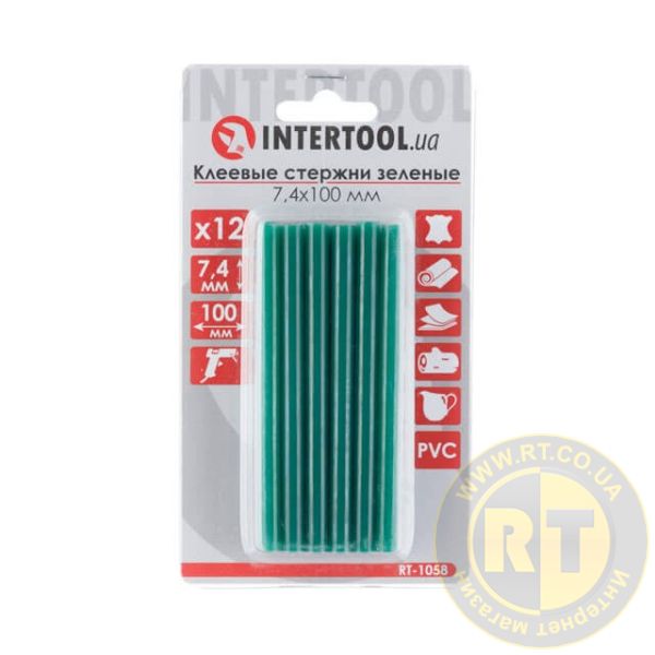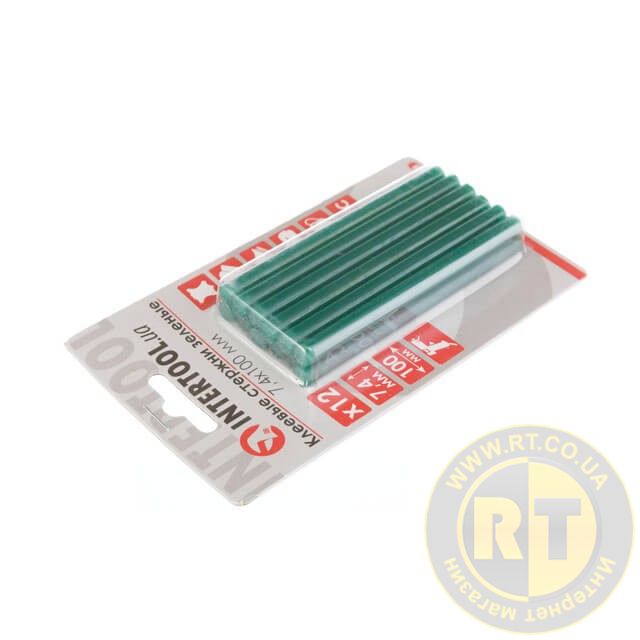 Комплект клейових стрижнів зелених, 7,4×100 мм, 12 шт. INTERTOOL RT-1058
