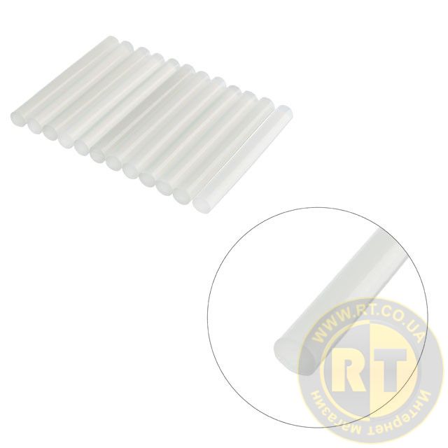 Діаметр стрижня 11,2 мм - один із найпоширеніших і найпопулярніших розмірів, підходить до будь-яких марок клейових пістолетів. Сам стрижень довжиною 100 мм, в упаковці - 12 штук.