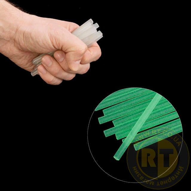 Флуоресцентні термоклейові стрижні мають унікальну властивість - вони світяться в темряві зеленим світлом! Їх ще часто називають люмінесцентним клеєм.
