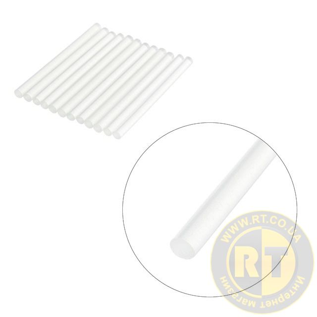 Діаметр стрижня 7,4 мм - один із найпоширеніших і найпопулярніших розмірів, підходить до будь-яких марок клейових пістолетів. Сам стрижень довжиною 100 мм, в упаковці - 12 штук.